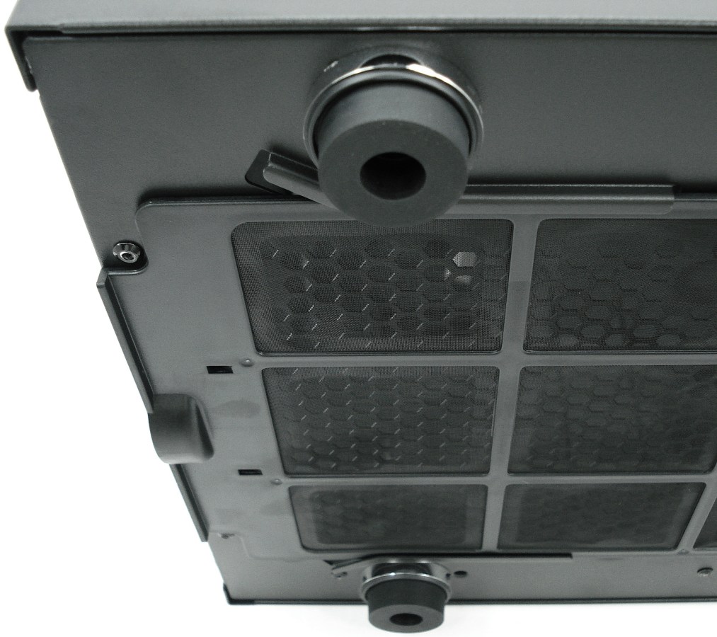 FRACTAL DESIGN ARC MIDI TOWER. Detalle Patas Traseras. Filtro Extraíble Cerrado