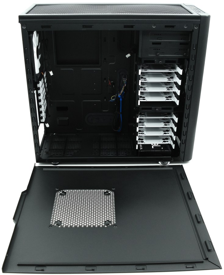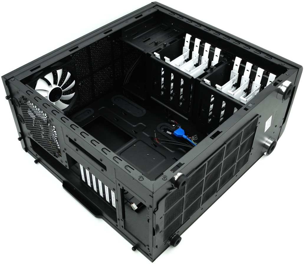 El interior de la Arc Midi se asemeja bastante a otras cajas ya analizadas en islaBit, por diseño y aspecto, aunque con varios matices a tener presentes. De entrada, la refrigeración activa opcional es uno de sus puntos fuertes, pudiendo instalarse hasta 8 ventiladores de 14 cm; una configuración muy completa para semitorres de este tamaño. Además, el hecho de venir totalmente cerrada contra el polvo por todas sus caras (a excepción del lateral izquierdo), hacen de Arc Midi una semitorre muy apetecible. Su gestión de cableado, su compartimento extraíble y sus extras hacen el resto para ser un producto muy competitivo.