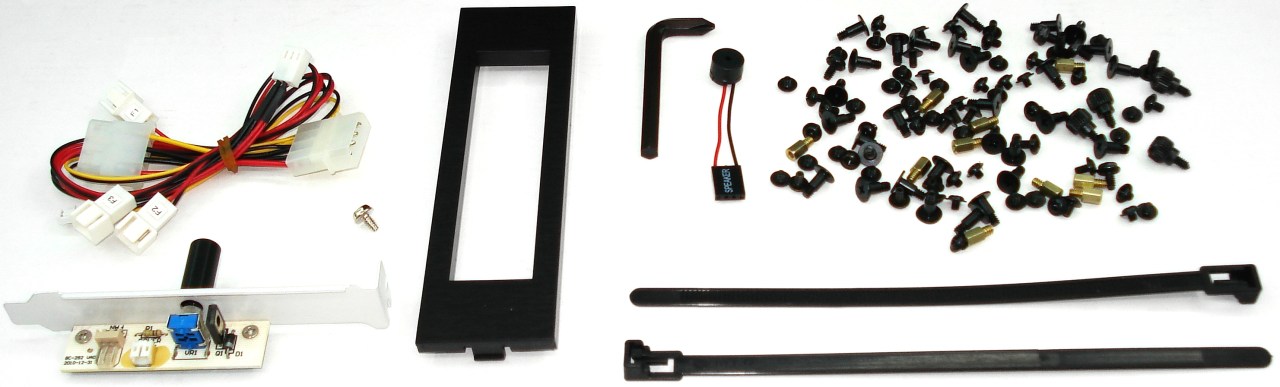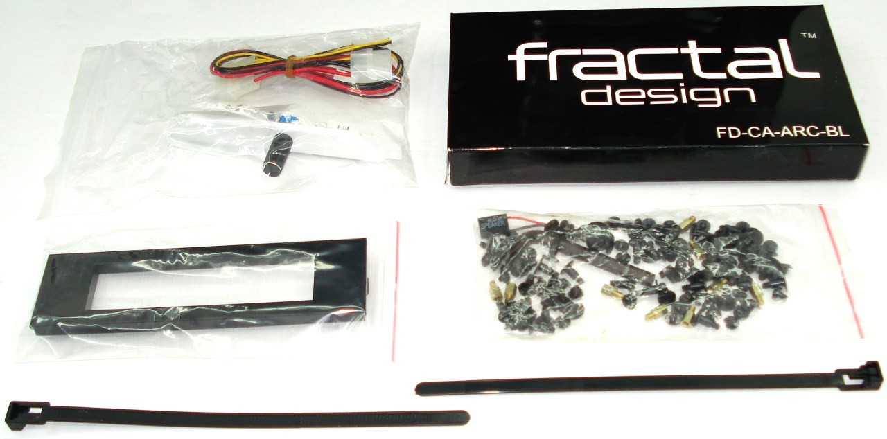 Como podemos ver, el kit de accesorios es muy completo. Tendremos de todo para su montaje. Fractal Design demuestra ser generosa en este aspecto, con todos los componentes preinstalados que trae, además de sus accesorios. altavoz, destornillador, y el potenciómetro, son todo detalles que sin duda agradecemos.