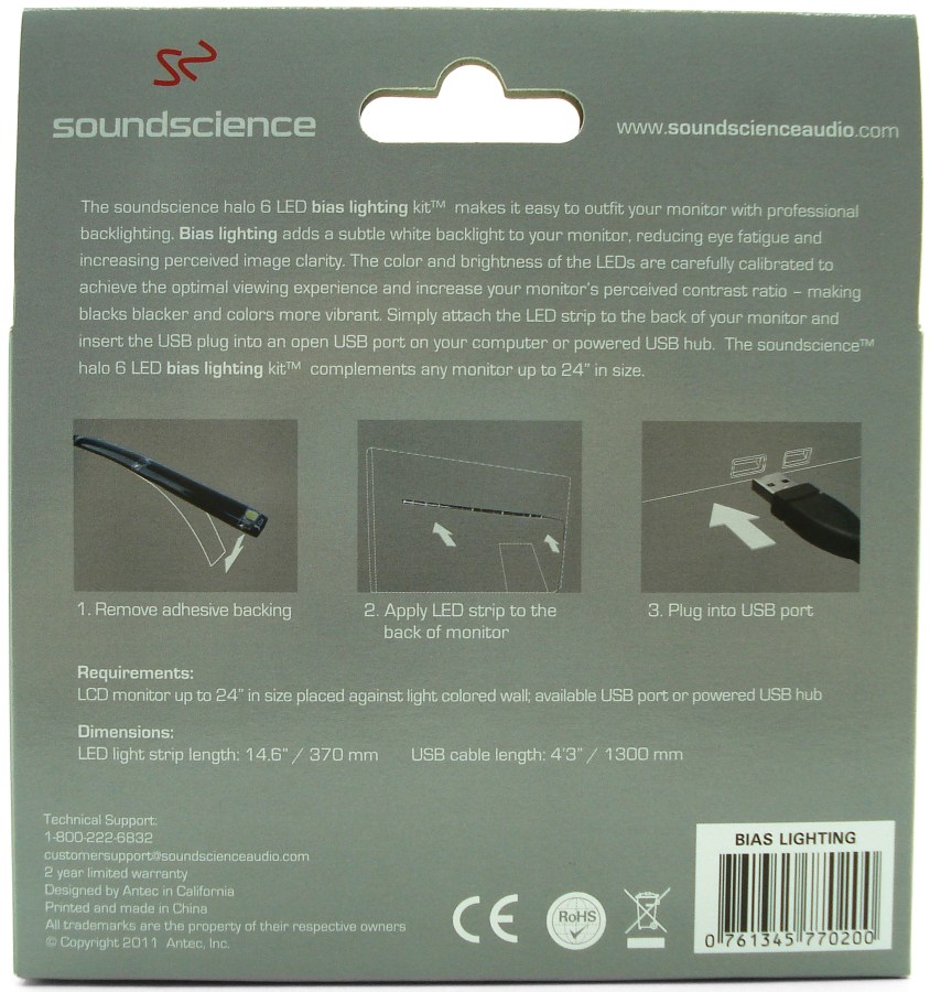 SOUNDSCIENCE HALO 6 LED BIAS LIGHTING KIT. Embalaje Vista Trasera