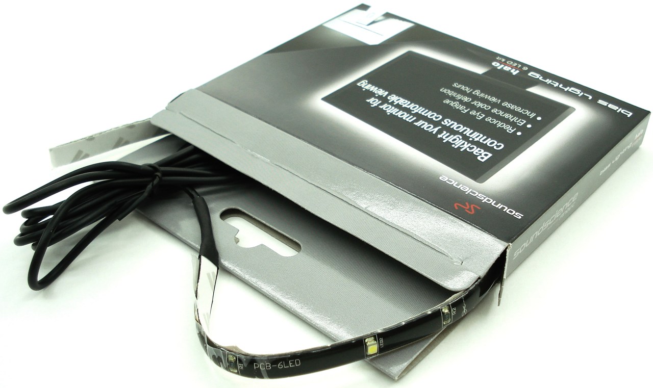 SOUNDSCIENCE HALO 6 LED BIAS LIGHTING KIT. Embalaje Vista en Perspectiva