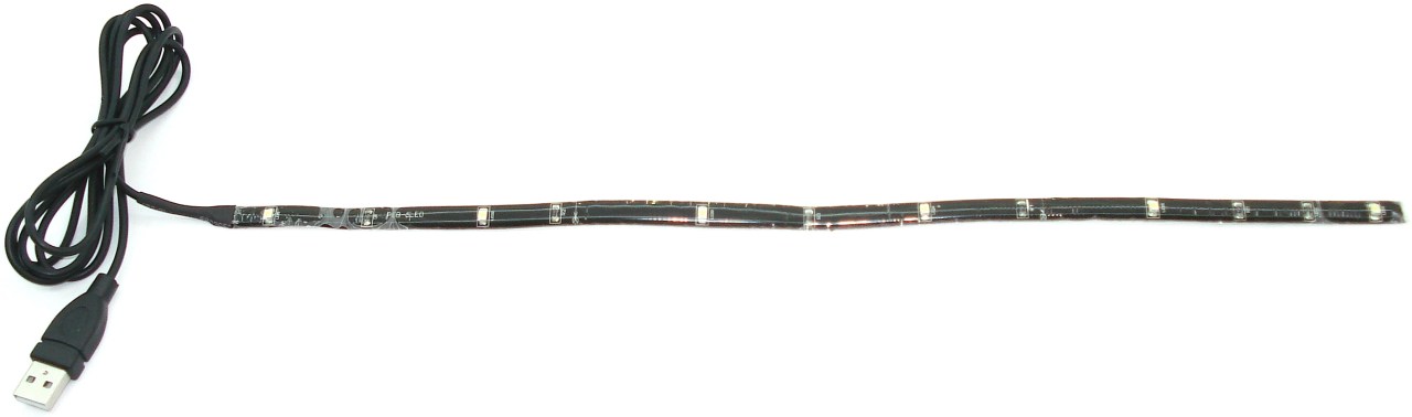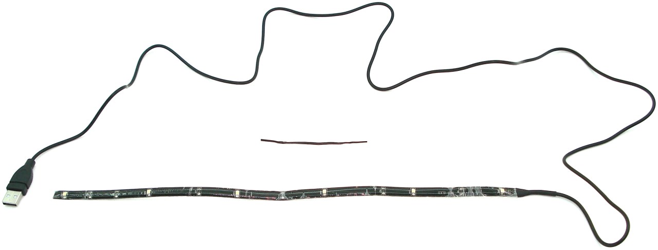 Este kit es básicamente una especie de tira o cinta que se puede torsionar o flexionar fácilmente, en el que se instalan unos LEDs blanco de iluminación unidireccional. Dicha tira está unida a un cable de alimentación con conector USB, que actúa de prolongador. Su montaje es por adherencia.