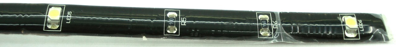 - Parte intermedia: circuito impreso plano y flexible. En él se sueldan los LEDs y resistencias empleados.