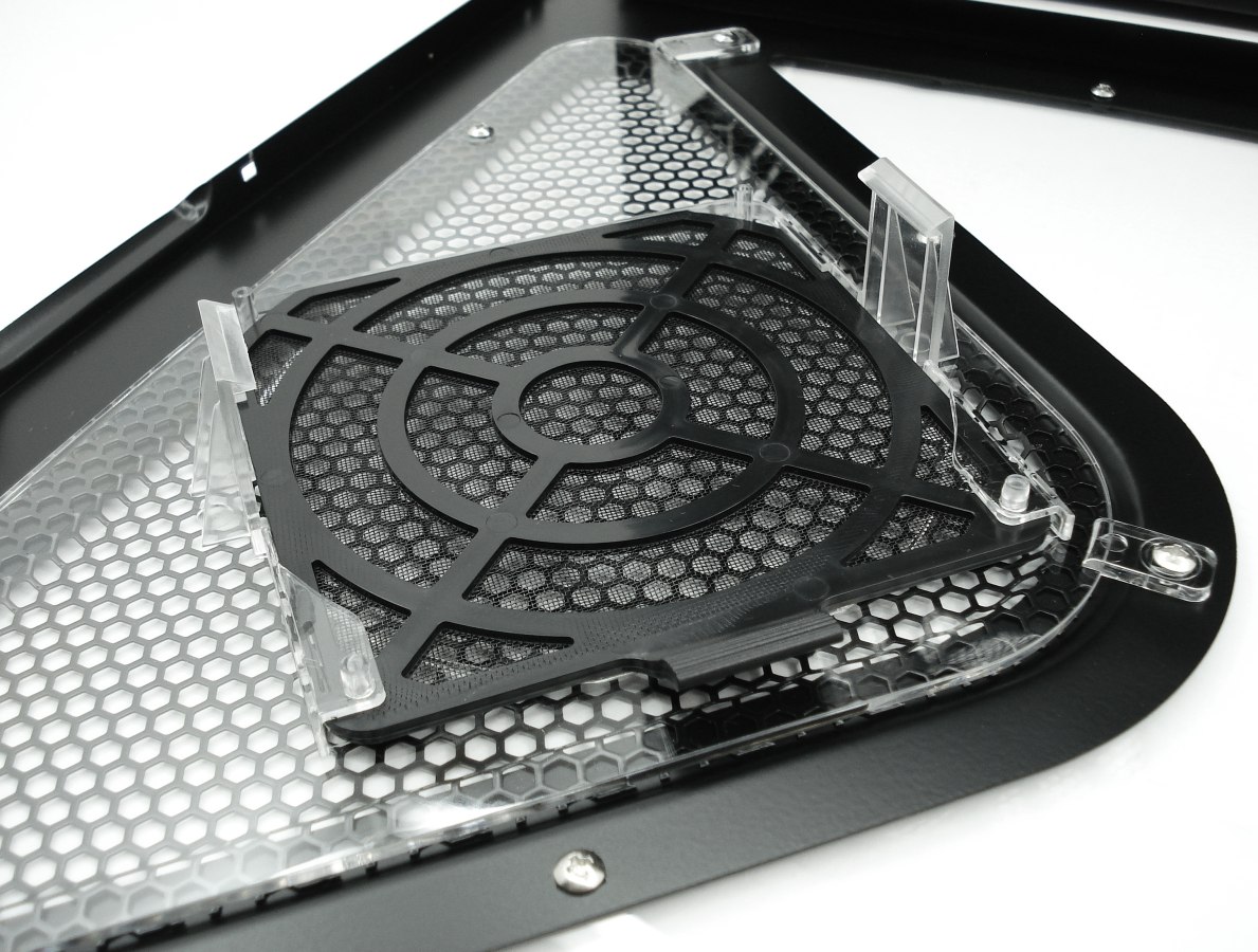 - 1 estructura de plástico ABS para instalación de un ventilador intermedio de 12cm y extraíble (preinstalado)