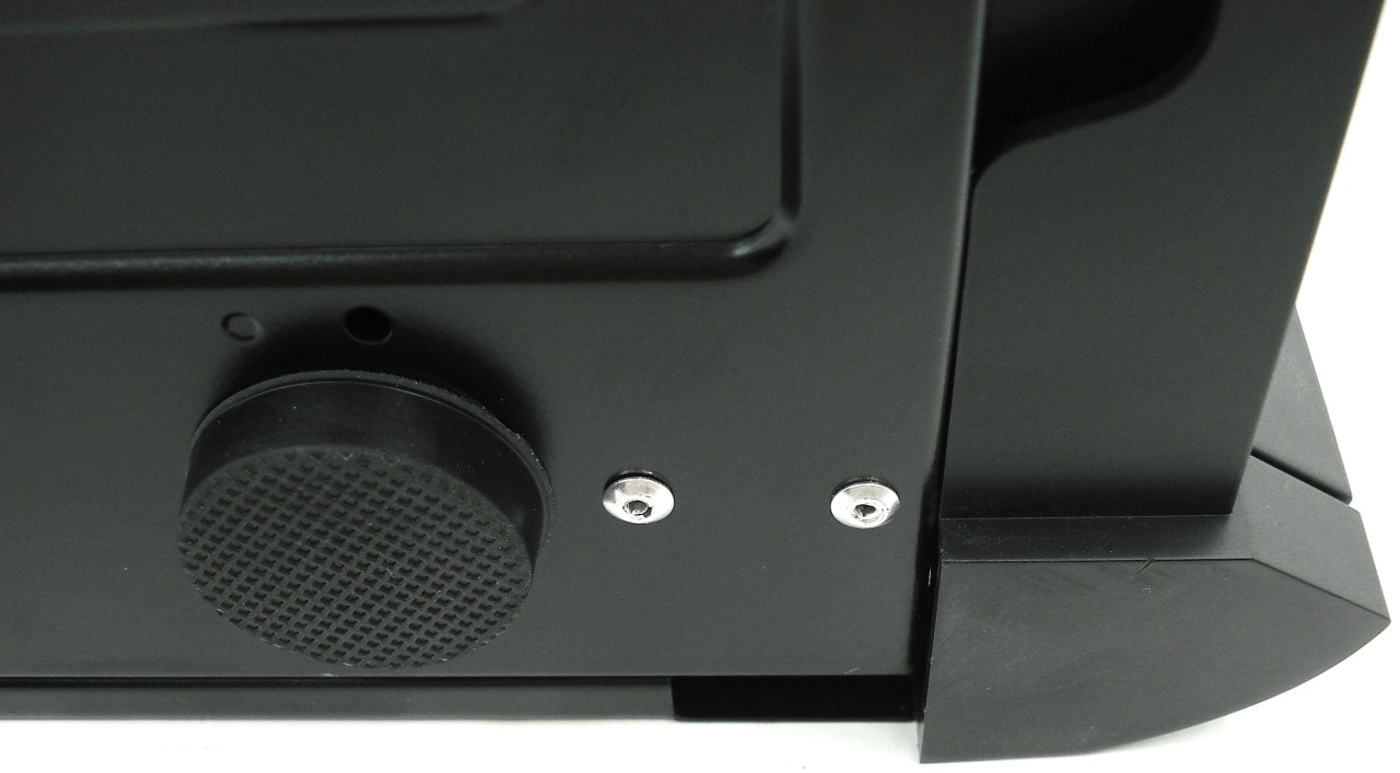 Una de las características mejor tratadas de la torre son sus excelentes patas, que impiden un desplazamiento demasiando suave en cualquier superficie, además de que amortiguan de cierto modo las vibraciones provocadas por la mayoría de motores empleados, tanto en los ventiladores como en los discos duros. En la parte delantera, se dispone de 4 patas, otras 2 en la parte trasera. Las circulares son de gran diámetro y buen agarre, y las frontales conservan la silueta de la sección horizontal de cada columna lateral del frontal. No obstante, éstas últimas no llegan a tocar la base, tal como hemos señalado anteriormente. Este sistema garantiza una excelente respuesta de asiento en la base de toda la torre, muy acorde a su peso neto.