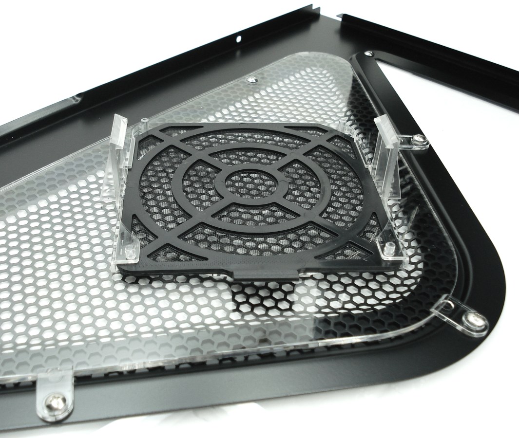 - 1 estructura de plástico ABS para instalación de un ventilador intermedio de 12cm y extraíble (preinstalado)