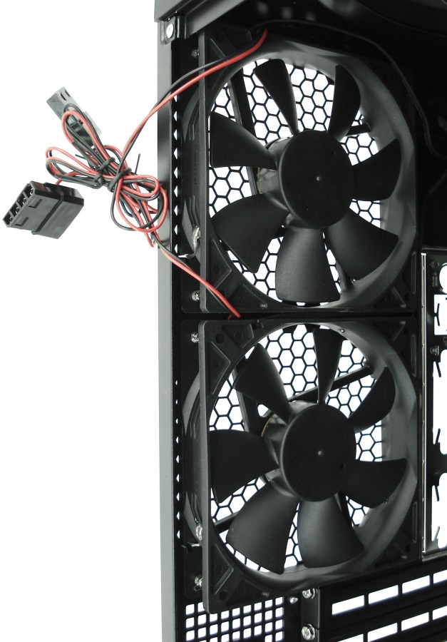 Los ventiladores traseros se sitúan encima de las placas PCI y debajo del panel trasero de RPM. Cada uno dispone de 3 LEDs azules, que no pueden ser apagados. Los 3 ventiladores de extracción están colocados de una forma ideal para refrigerar directamente toda la zona del socket de la placa base y alrededores, bajando directamente la temperatura a la placa base, CPU y RAM, acorde a la termodinámica.