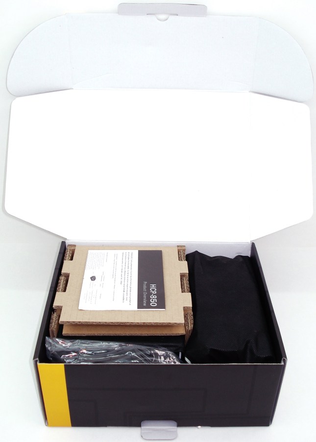 El fabricante ha presentado de forma bastante básica su producto en su interior. Lo más llamativo son sus protecciones, de doble capa de cartón rígido que amortiguará de forma justa los golpes al cuerpo de la fuente. Además viene protegida por una bolsa negra con cierre de velcro. La fuente de alimentación posee un cableado nativo, enfundado y atado con 1 cinturón de plástico ajustable y otro modular recogido en otra bolsa negra con hasta 8 cableados fácilmente identificables.