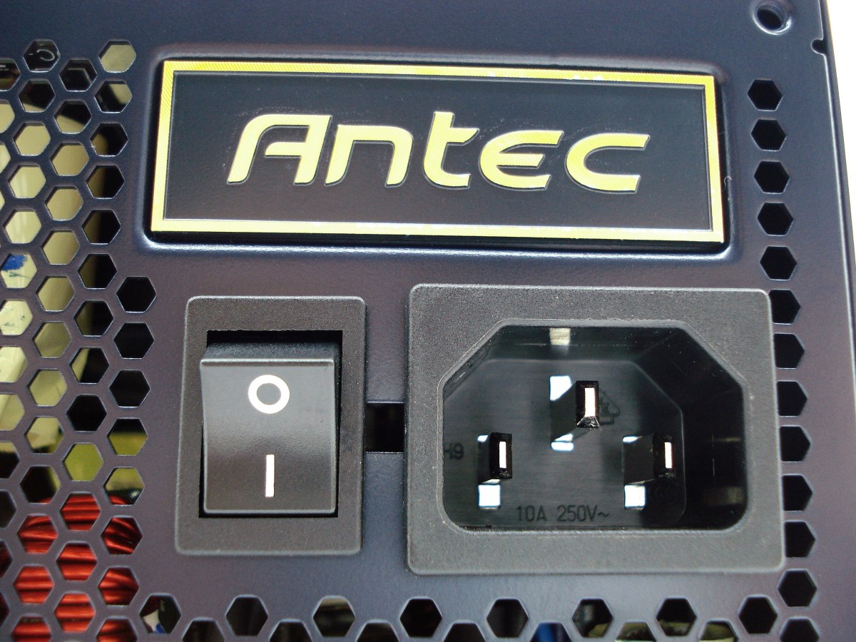ANTEC HIGH CURRENT PRO 850W. Detalle Entrada de CA. Interruptor de Encendido/Apagado