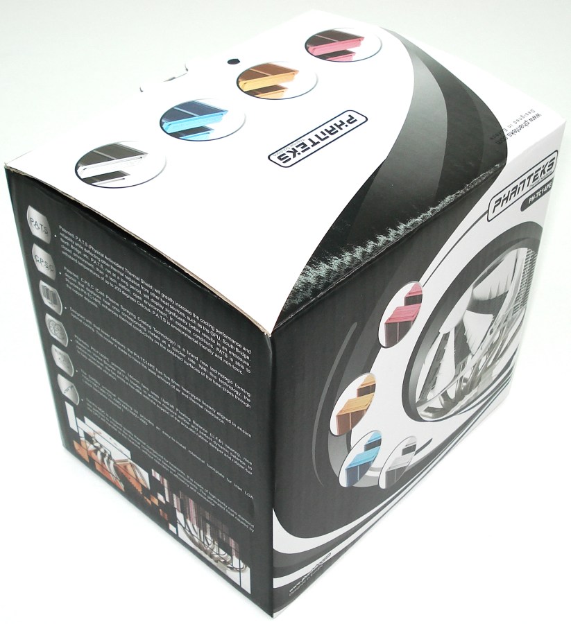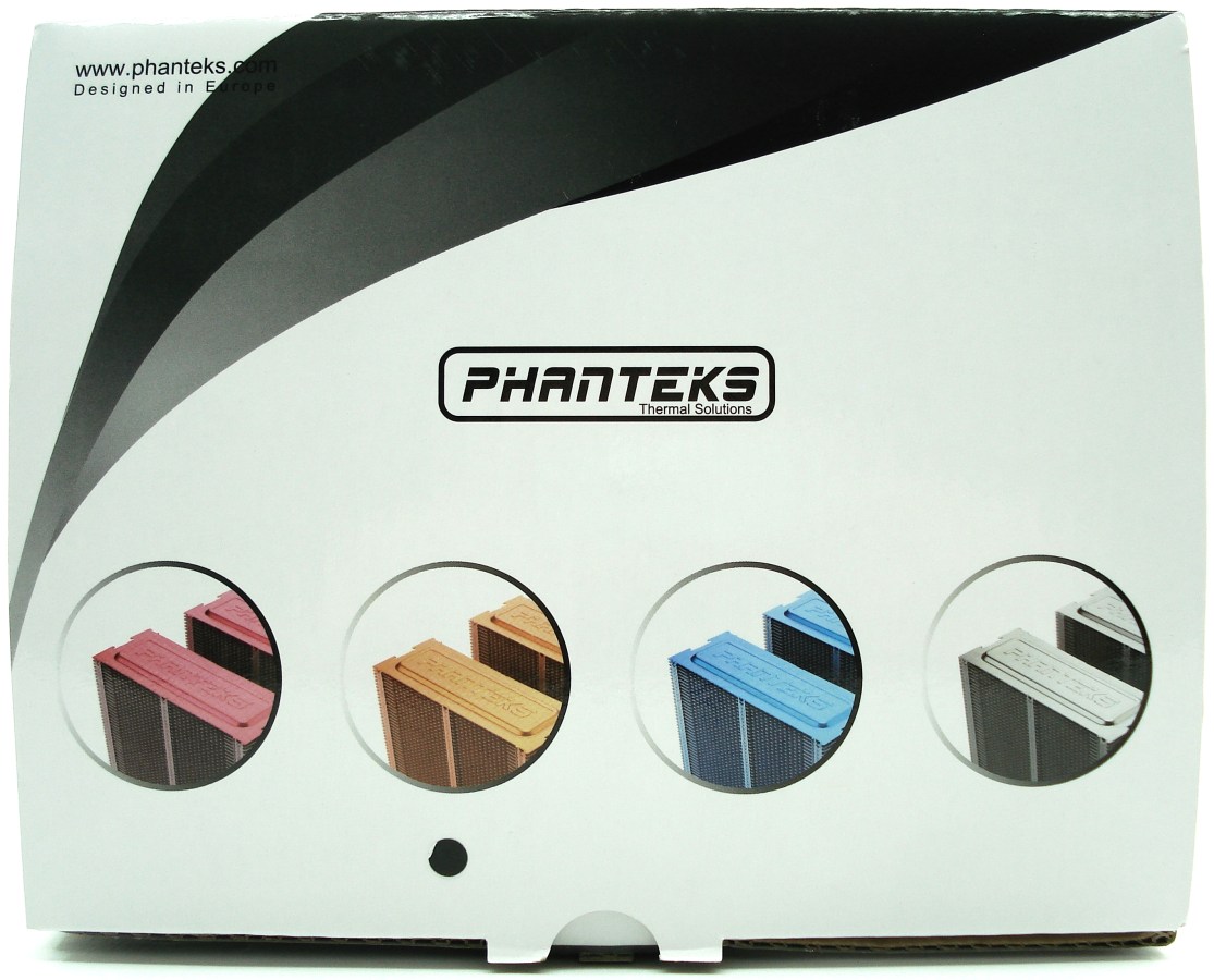 La marca «PHANTEKS» y el nombre del modelo PH-TC14PE tienen su pequeño espacio en la parte superior. El nombre ya hace referencia con el número 14 a la dimensión en anchura del disipador y de los ventiladores, de 14cm. Esto ya nos da una idea de las grandes dimensiones que deberá tener todo el conjunto.