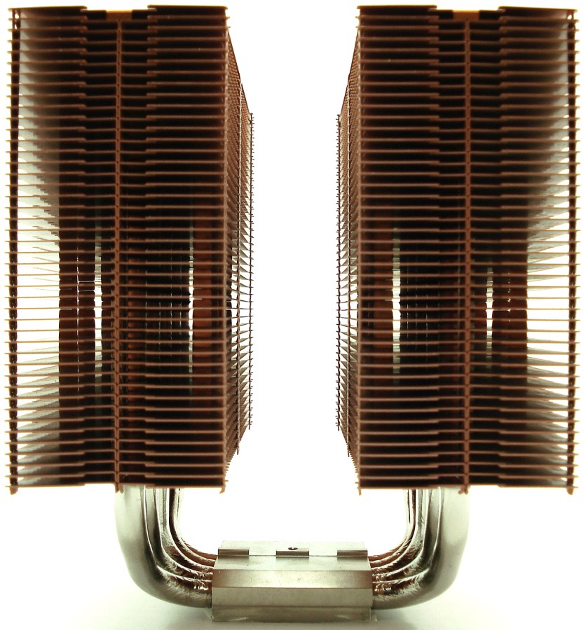 De entrada, lo primero que nos ha llamado la atención, a parte del ya conocido diseño en «U» de doble torre, es lo bien aprovechada que está la altura hasta el final. El fabricante ha decidido tapar las puntas extremas de cada tubo de cobre y llegar hasta ellas repletas de láminas de aluminio. Así el aprovechamiento en volumen es considerable.
