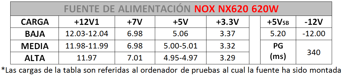 NOX XTREME GETTINXTREME NX620. Prueba Tensiones con Téster Antec