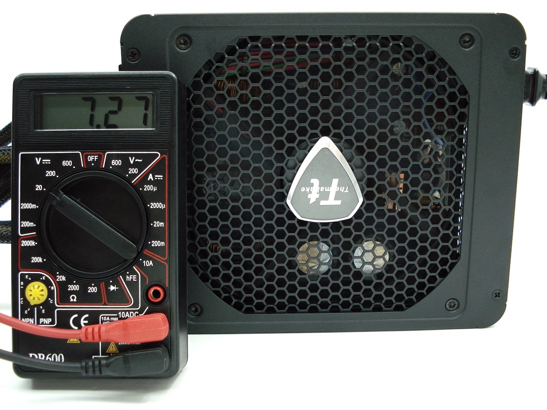 THERMALTAKE TOUGHPOWER GRAND 1050W. Prueba con Polímetro. Tensión de +7V (+12V1 – 5V)