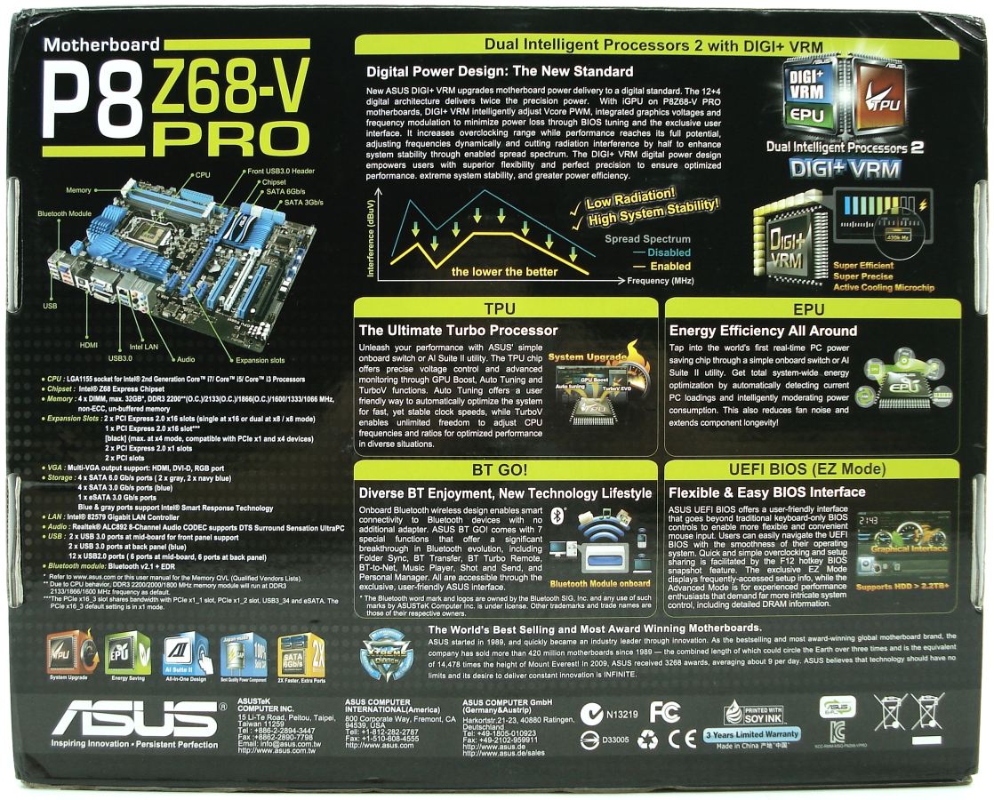 ASUS P8Z68-V PRO. Embalaje Vista Trasera