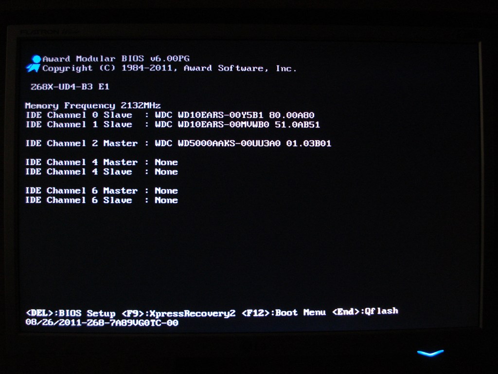 GIGABYTE GA-Z68X-UD4-B3. Pantalla de Arranque