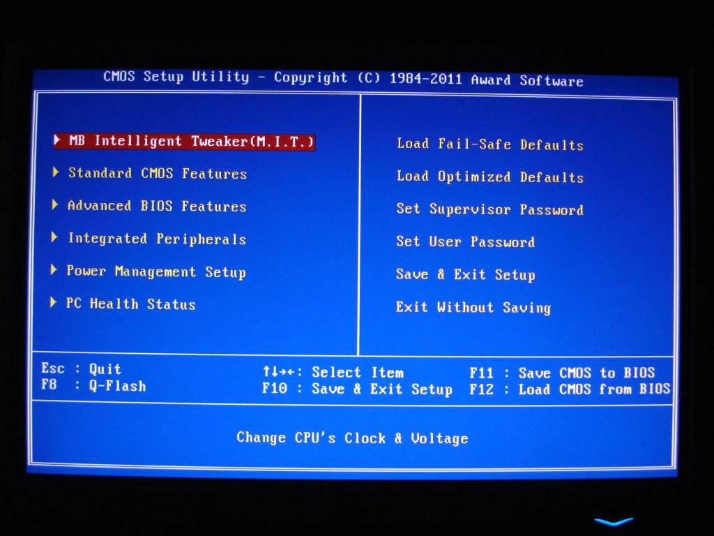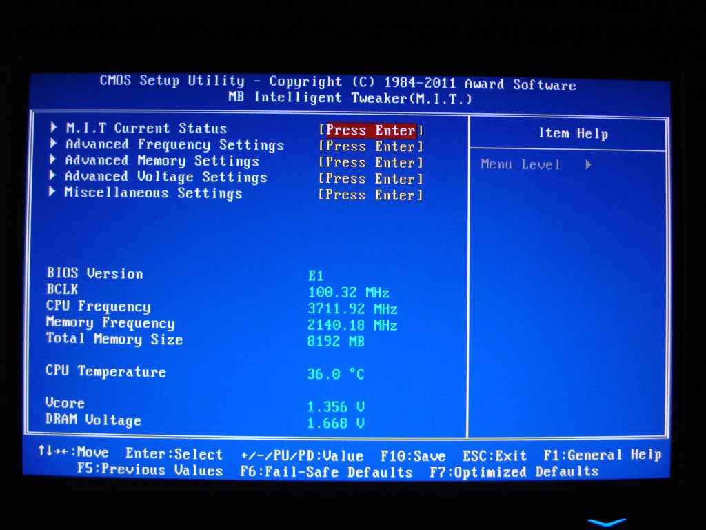 GIGABYTE GA-Z68X-UD4-B3. Award BIOS versión E1 (F9B). M.I.T. Current Status