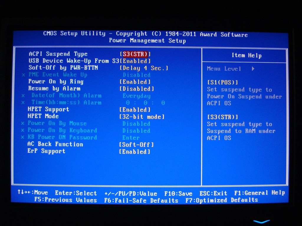 GIGABYTE GA-Z68X-UD4-B3. Award BIOS versión E1 (F9B). Power Management Setup