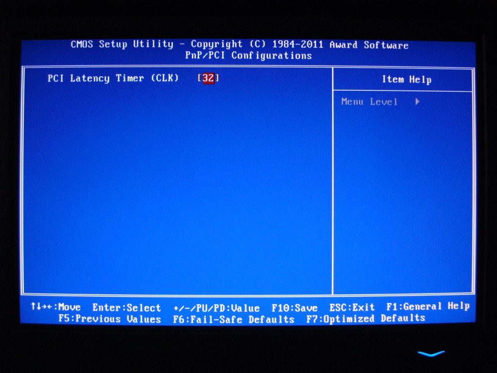 GIGABYTE GA-Z68X-UD4-B3. Award BIOS versión E1 (F9B). PnP/PCI Configurations (Sección Oculta)