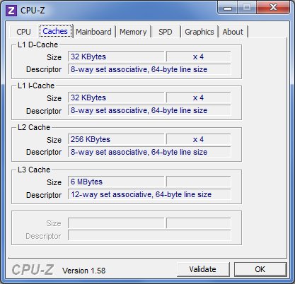 GIGABYTE GA-Z68X-UD4-B3. Programa CPU-Z. Sección Caches CPU