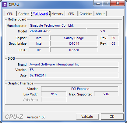 GIGABYTE GA-Z68X-UD4-B3. Programa CPU-Z. Sección Mainboard