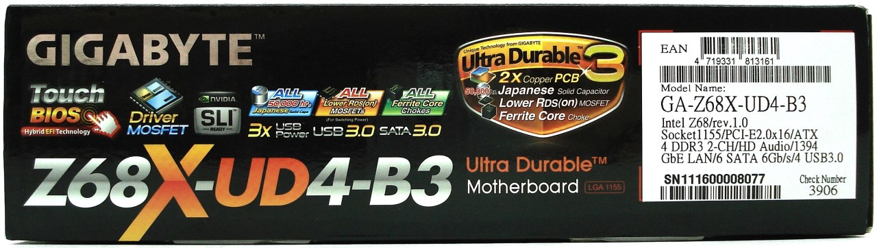 GIGABYTE GA-Z68X-UD4-B3. Embalaje Vista Lateral Izquierda