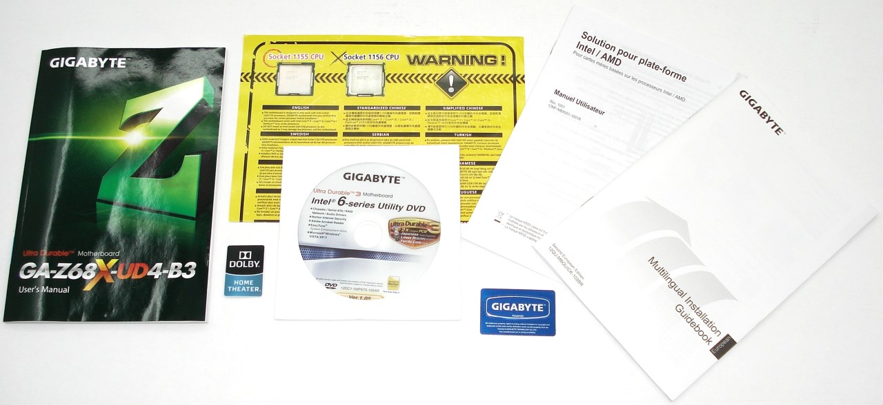 GIGABYTE GA-Z68X-UD4-B3. Guías del Usuario, DVD Software, Hoja de Advertencia y Pegatina Gigabyte