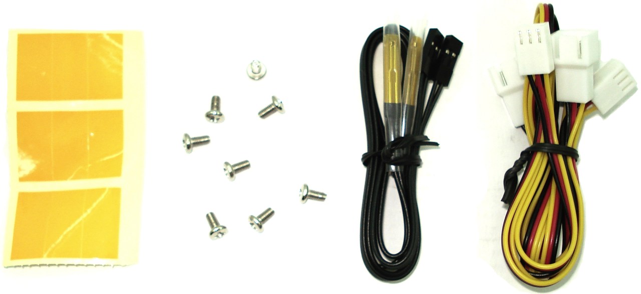 Dentro de una bolsa de cierre hermético encontramos el resto de kits de montaje, fijación y conectividad para completar el panel Strike-X Panel. Tendremos los 8 tornillos para montar 2 en cada lateral y en cada altura correspondiente a cada bahía (2 + 2 + 2 + 2). Se agradecen los 4 cables extras que se incluyen, con las 2 sondas y 2 conectores FAN de más.