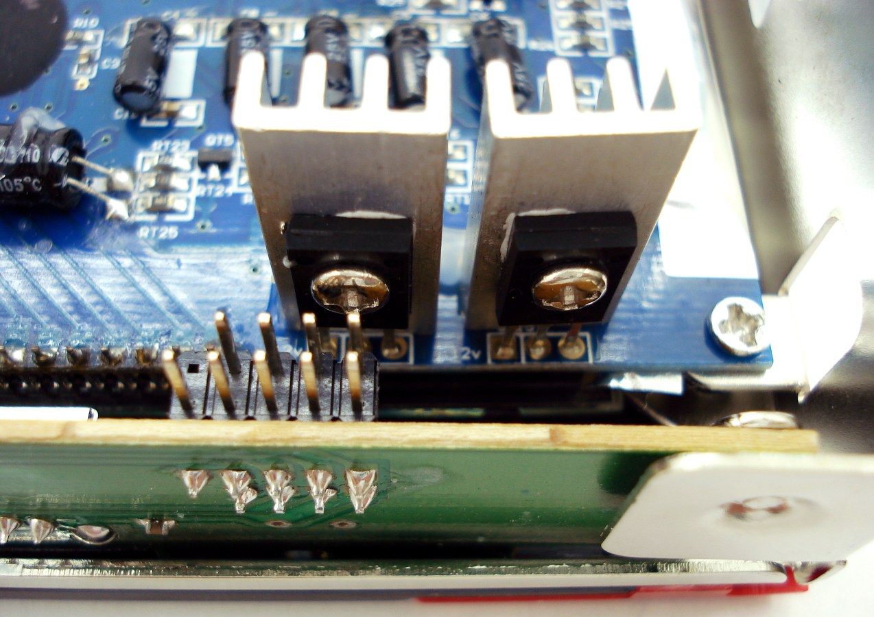 En general, para asegurar todo el conjunto en el reparto y diseño del mismo, se opta por separar estos transistores lo más alejados posible del cableado, así se evita en la medida de lo posible un contacto directo de los cables con los disipadores de aluminio.