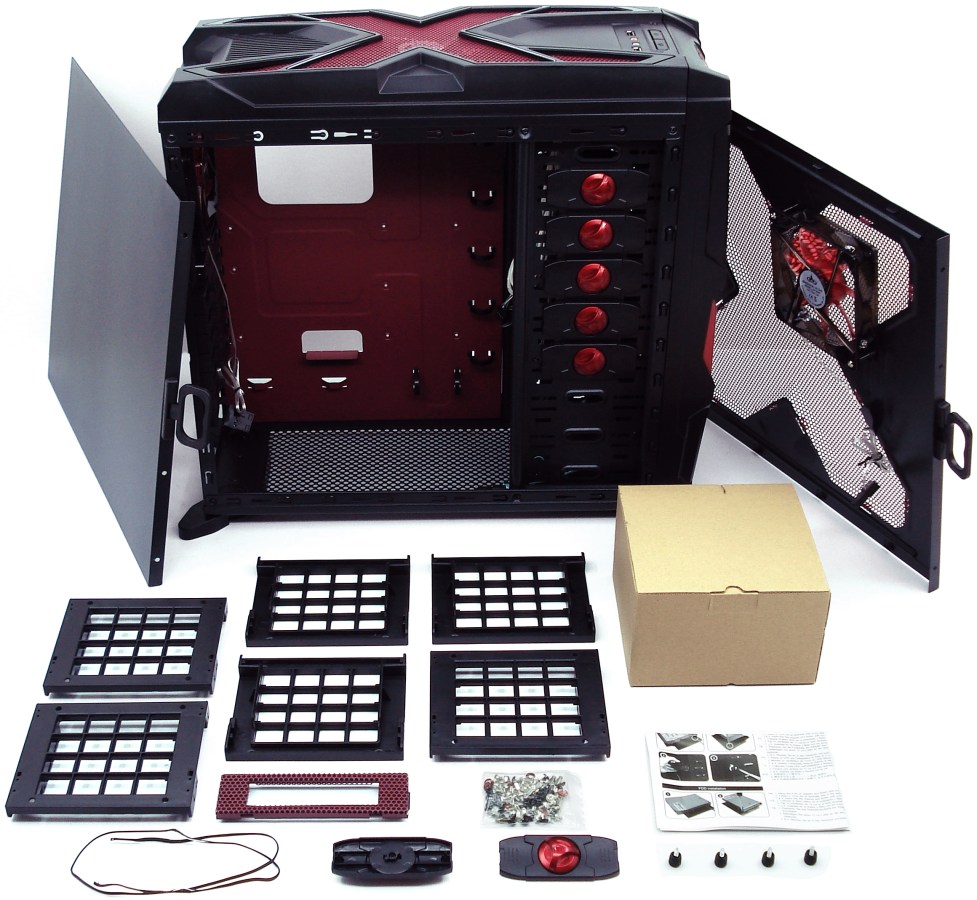 - Notable flexibilidad en general. La Strike-X Red permite instalaciones con amplias posibilidades, con RL, con varias combinaciones de ventiladores, con tarjetas gráficas de elevada longitud (290cm) y con un reparto muy bueno en la zona frontal con triple configuración para unidades de 5.25, 3.5″ y la instalación de varios ventiladores más. Un amplio abanico de posibilidades para un PC de nivel medio.