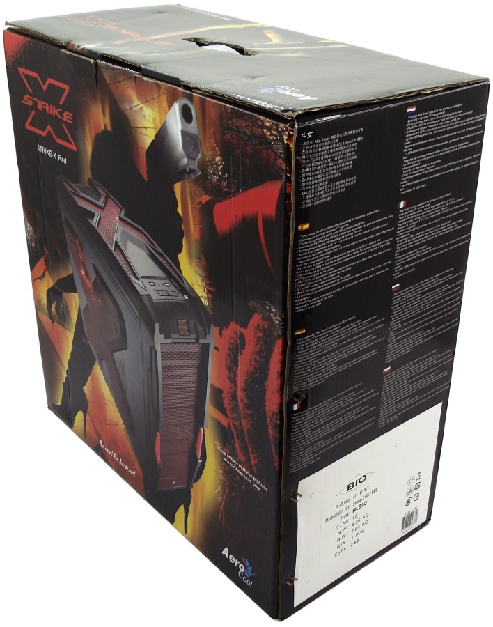AEROCOOL STRIKE-X RED. Embalaje Vista Lateral Derecha