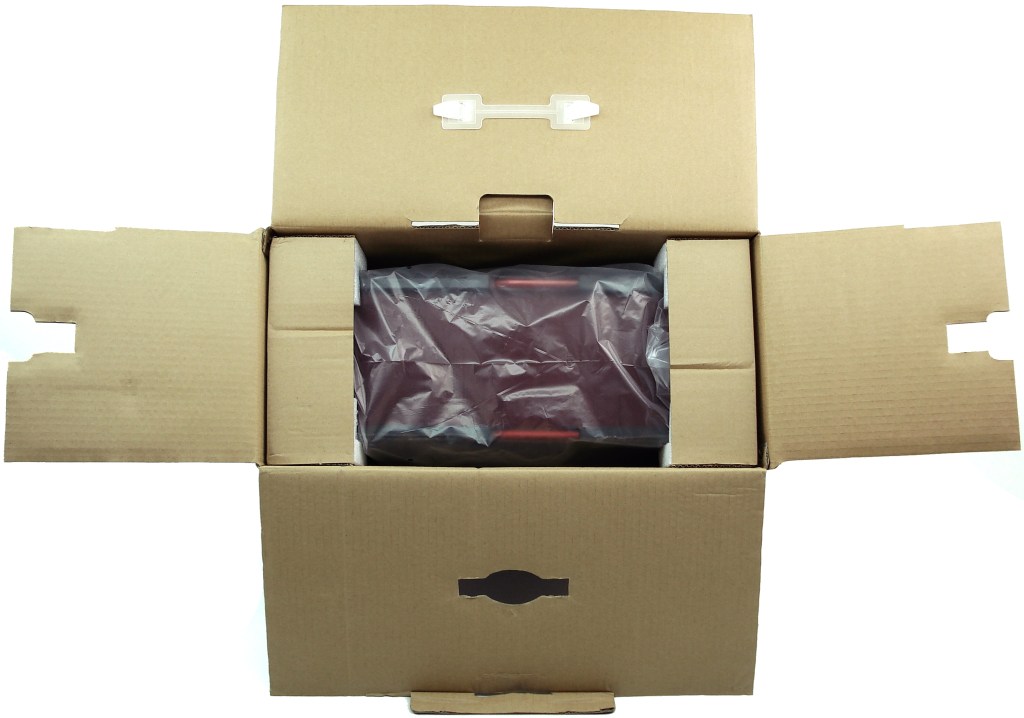 Al abrir el embalaje nos encontramos con un importante refuerzo a través de 4 lengüetas plegables de cartón para reforzar la robustez del asa, cuyo enganche está bastante logrado; se podrá tirar bruscamente sin temor a romperse (con el sistema de cierre totalmente cerrado).