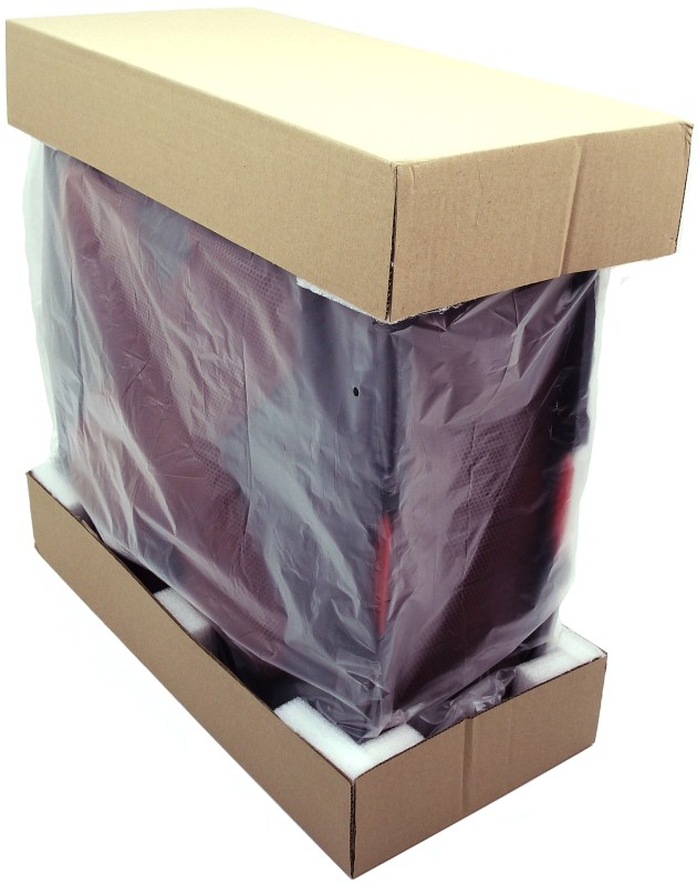Si se refuerza bastante bien el embalaje de cartón, se podrá ahorrar en las protecciones interiores de amortiguación. Esta combinación de materiales ya la hemos visto en multitud de ocasiones y cada vez se usa más para abaratar costes y uso de materiales innecesarios, con un doble jueg de cartón que envuelve y soporta 3 tiras de molde de poliestireno expandido, suficiente para amortiguar los golpes. Si la semitorre pesara más, se exigiría de protecciones más contundentes.
