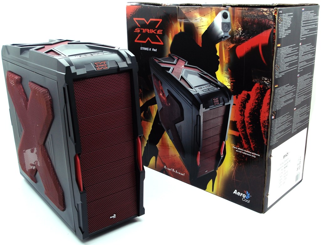 AEROCOOL STRIKE-X RED. Fotografía de Exposición I. Strike-X + Embalaje