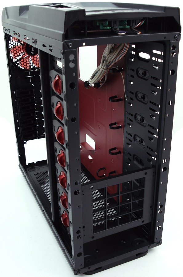 AEROCOOL STRIKE-X RED. Fotografía de Exposición V. Laterales + Frotal Desarmados