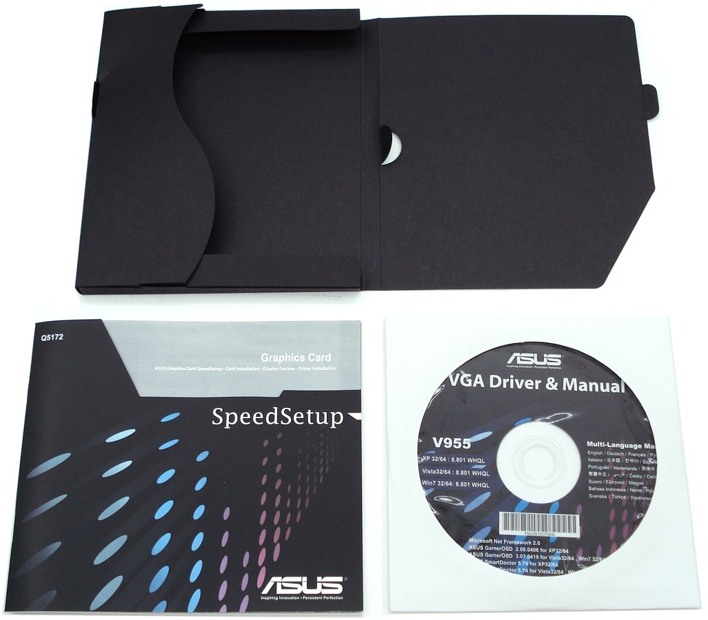 El pequeño estuche de cartón encierra tanto el manual de instrucciones como el DVD de instalación, todo un detalle para un pack de calidad. El manual de instrucciones de la tarjeta gráfica describe cómo instalar tanto el hardware como el software, empleando múltiples idiomas. El DVD de instalación nos trae varias utilidades del propio fabricante ASUS, además de los drivers de AMD. Como es habitual, es aconsejable visitar la página web oficial de AMD para descargar e instalar la última versión de dichos controladores.