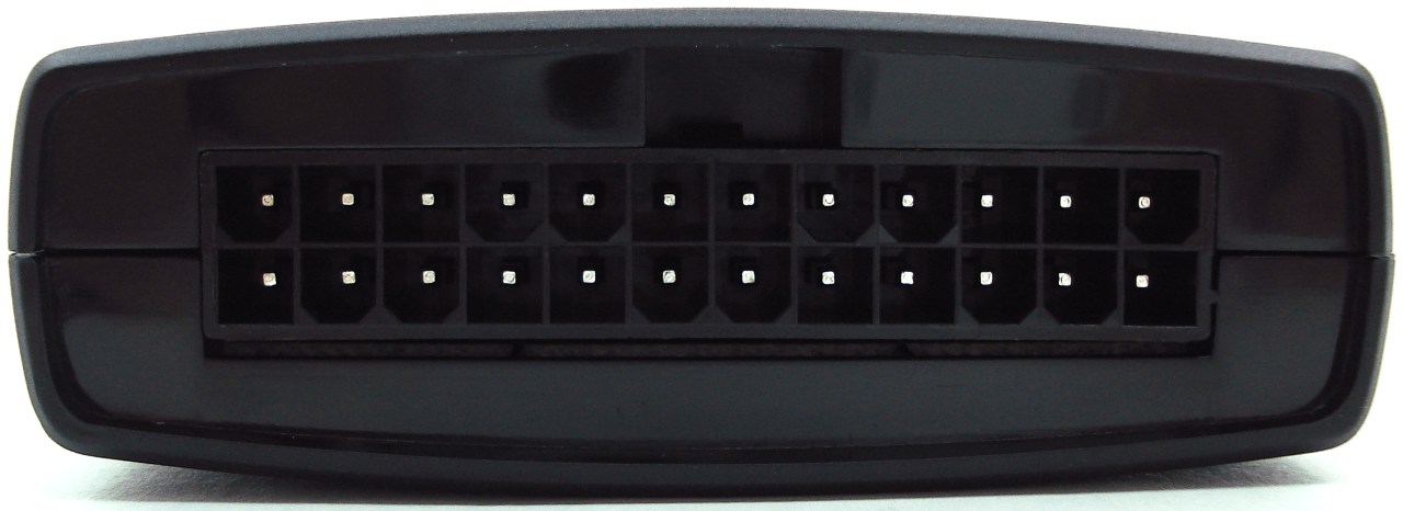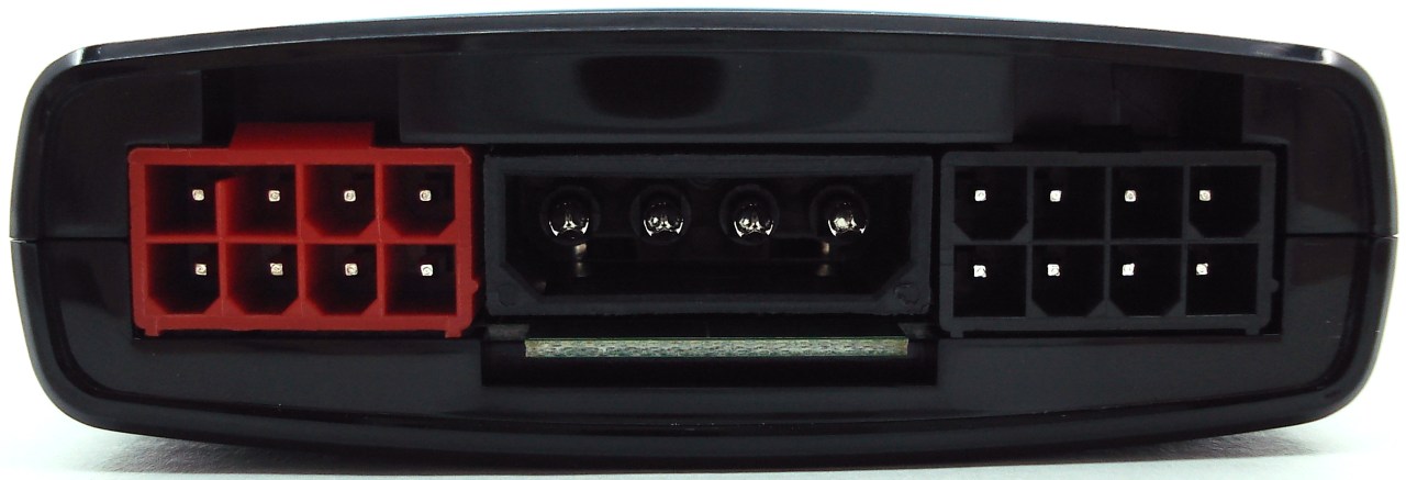 En la parte superior nos encontramos con el primer, y tal vez único inconveniente de este téster. Los 2 conectores centrados de molex de 4 pines y de SATA están montados demasiado juntos. Esto conlleva, y de hecho ocurre así, a que nos resulte imposible conectar ambos cables destinados a la vez, porque el cable SATA es más grueso debido a su cableado. Esto puede suceder con la mayoría de fuentes de alimentación ATX del mercado. No obstante, esto resulta un mal menor, porque podremos realizar las mediciones en 2 pasos, conectando cada conector de manera individual.