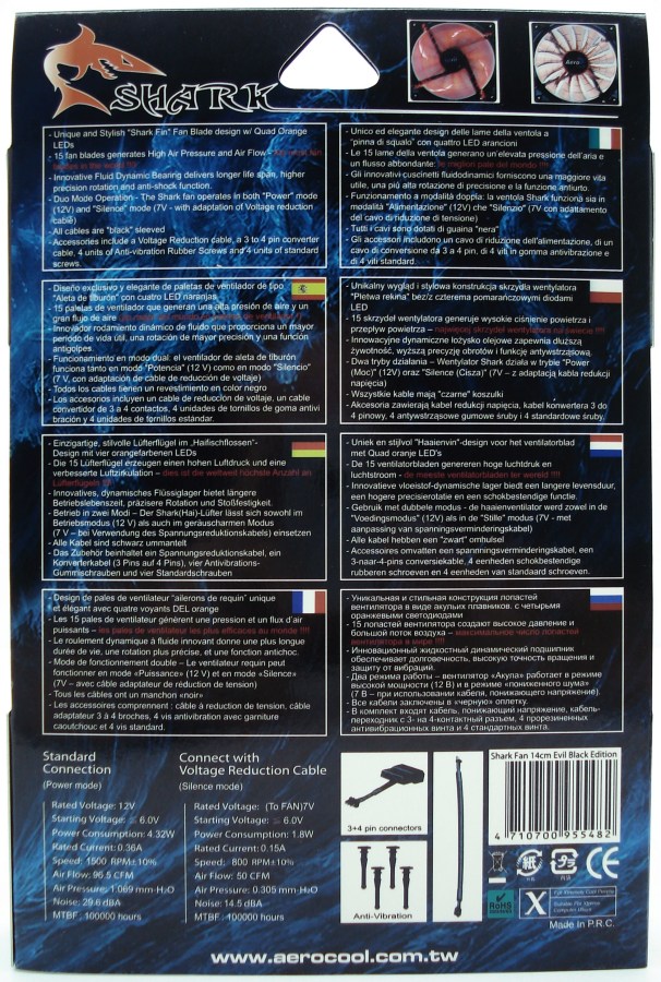 AEROCOOL SHARK 14cm EVIL BLACK/DEVIL RED EDITION. Embalaje Vista Trasera