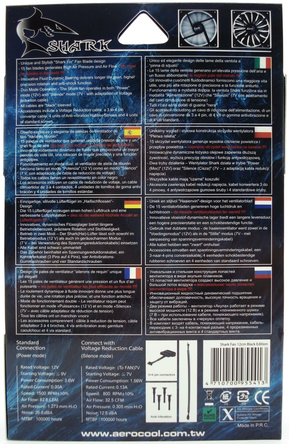 AEROCOOL SHARK 12CM BLACK EDITION. Detalle Embalaje Vista Trasera