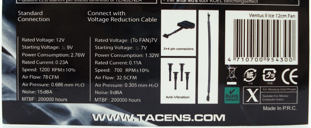 TACENS VENTUS ICE II 12CM. Detalle Embalaje Vista Trasera