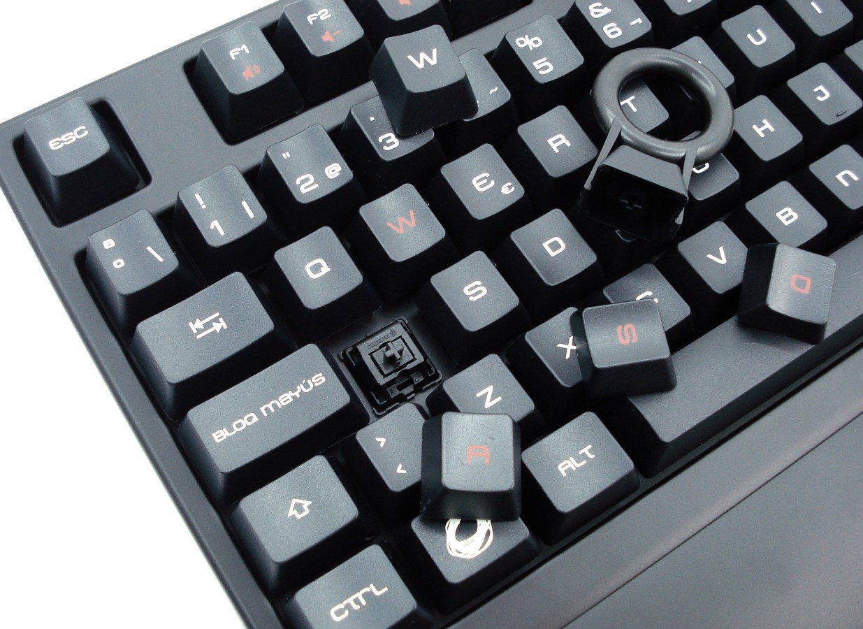 Si sustituimos las teclas, esta es la estampa que nos queda. Quizá sea un poco absurdo este tipo de cambio, pero bueno, parece una moda que los teclados gamer traigan este tipo de teclas para cambiar, que poca funcionalidad aportan y que se centran únicamente en el aspecto visual, en nada más.