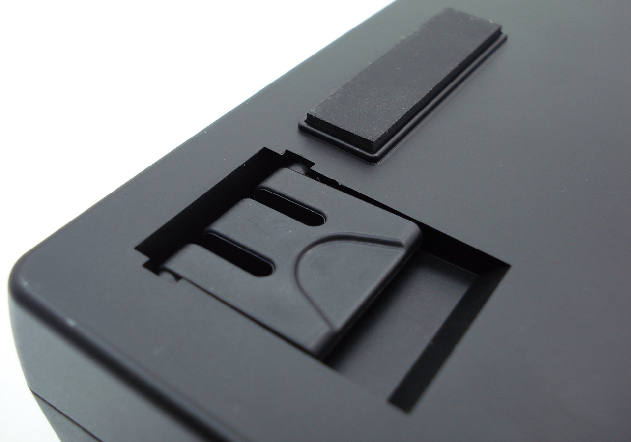 El Strike posee 2 patas delanteras abatibles de buena calidad. Son robustas y de buen diseño, así que podremos cargar bastante el teclado sin que ellas se acaben rompiendo. A través de un enganche central permanecen fijadas, y son fácilmente retirables. Con ellas conseguimos incrementar la inclinación por defecto en unos 3 o 4 grados más.