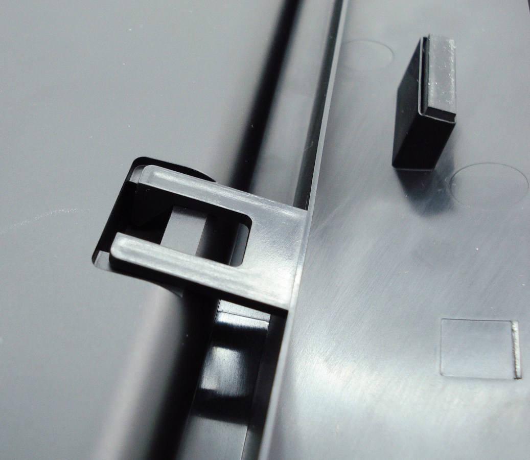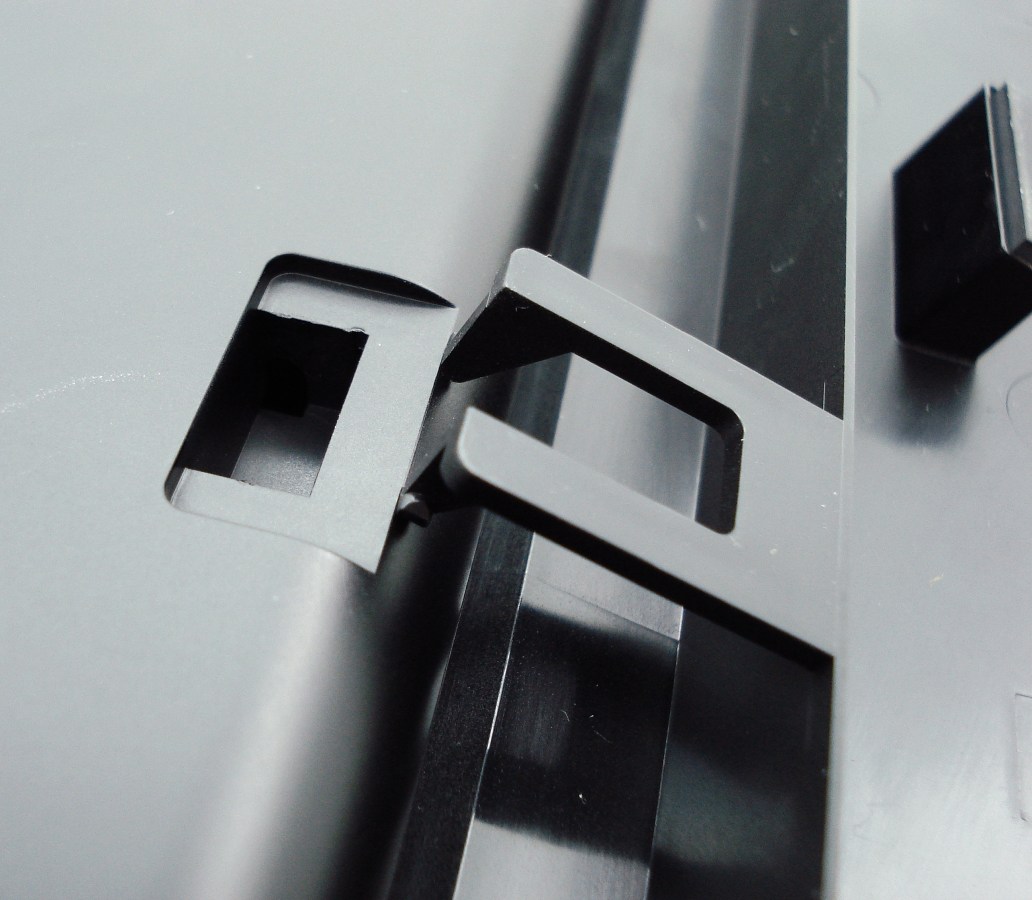 El anclaje de cada horquilla del reposamuñecas se fija con mucha facilidad. Por otro lado, la forma de desengancharla es mucho más complicada, obligando al usuario a girar el teclado y a oprimir por ambos laterales de la horquilla para conseguir desengancharla. Pese a que esta operación se realiza muy pocas veces, resulta ser perdonable. Lo que ocurre es que este sistema es demasiado viejo y no resulta ser del todo eficaz, depende demasiado del material empleado y de su calidad, densidad y grosor para que dure lo mínimo que cabría esperar. Es del todo aconsejable que los fabricantes huyan de este sistema de anclaje, que pese a que en este caso cumple su función, es enteramente mejorable por otros, no precisamente complicados de fabricar.