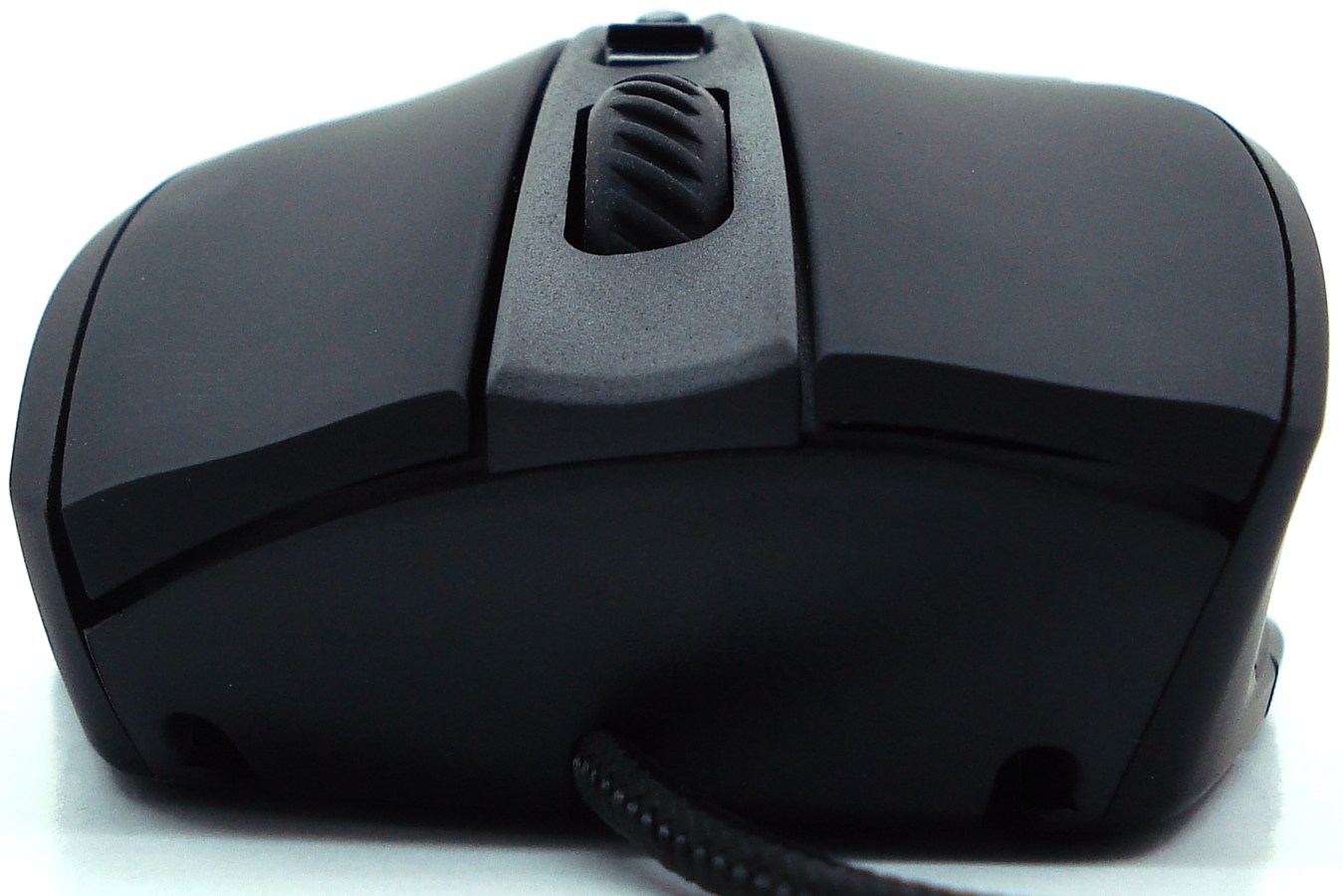 La parte frontal y posterior no tiene ningún misterio, conservando la misma estampa de la mayoría de ratones. No obstante, tal como veremos en las dos fotografías siguientes, la zona curva posterior quizá esté algo exagerada con un radio demasiado conservador y menos esférico que quizá eleve un poco la palma de la mano. Veremos ergonómicamente qué tal se comporta.