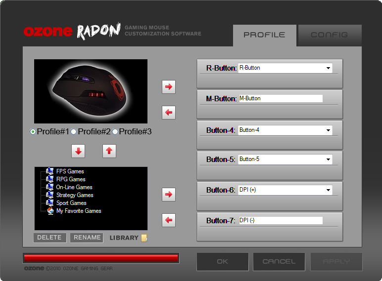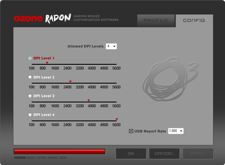 OZONE GAMING RADON 5K. Captura Software Ozone Radon. Sección «Config»