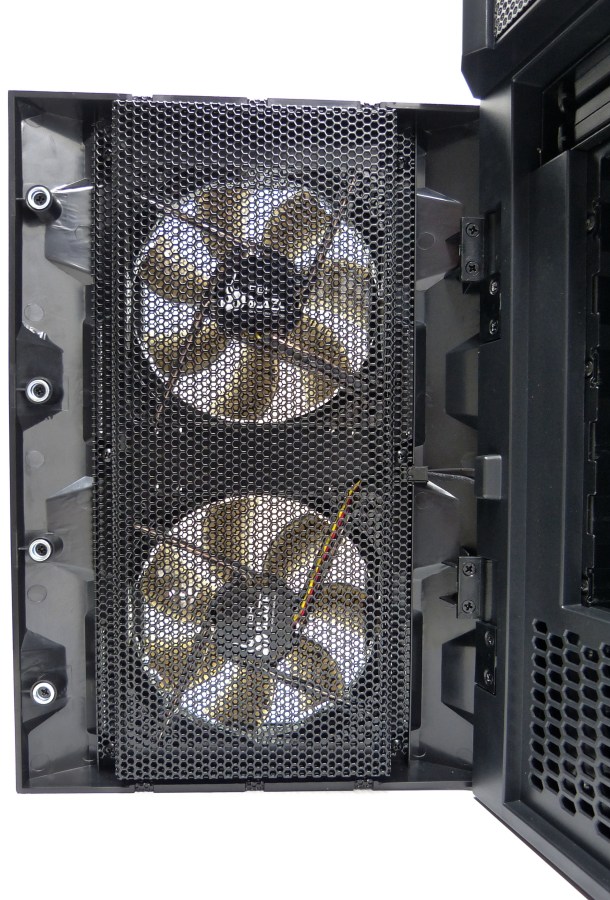 - El propio reverso de la puerta, equipado con 2 ventiladores de 12cm con LEDs rojos.