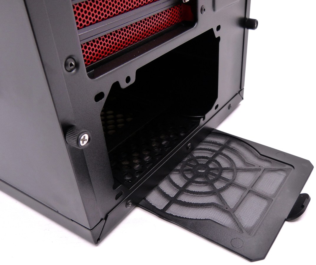 Nox optó por equipar un filtro extraíble para proteger la fuente de alimentación contra el polvo, situado en la base por la cara externa. La fuente de alimentación puede instalarse colocando el ventilador hacia arriba o hacia abajo.