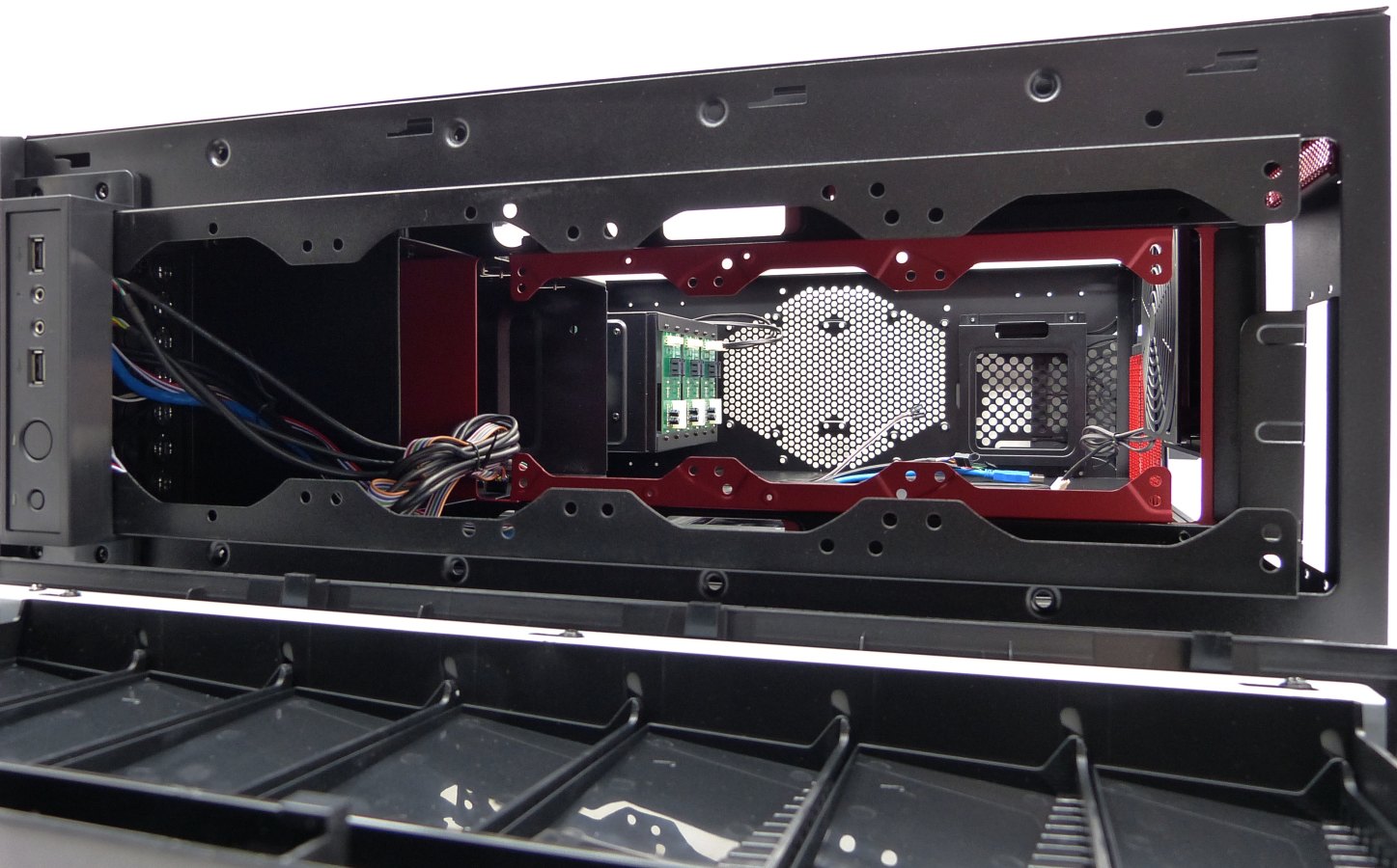 FOTO: NOX BLAZE X2 PROJECT. Detalle Interior Zona Delantera. Bahías de 5.25″ (Módulo Superior) — PAGINA 16.