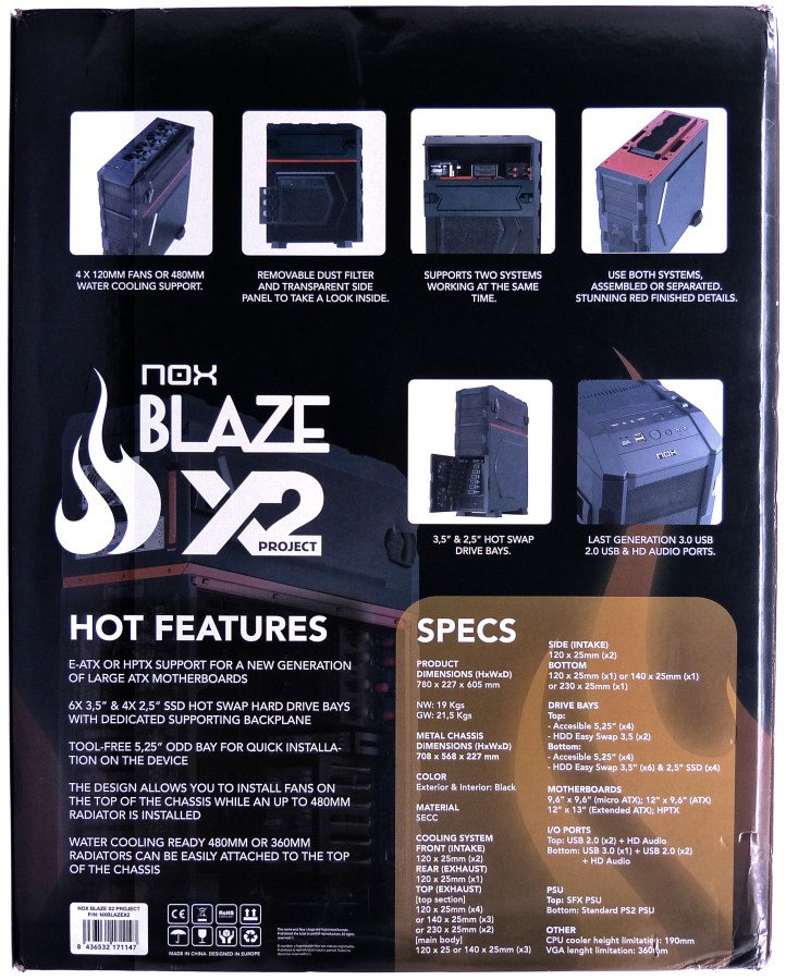 NOX BLAZE X2 PROJECT. Embalaje Vista Trasera