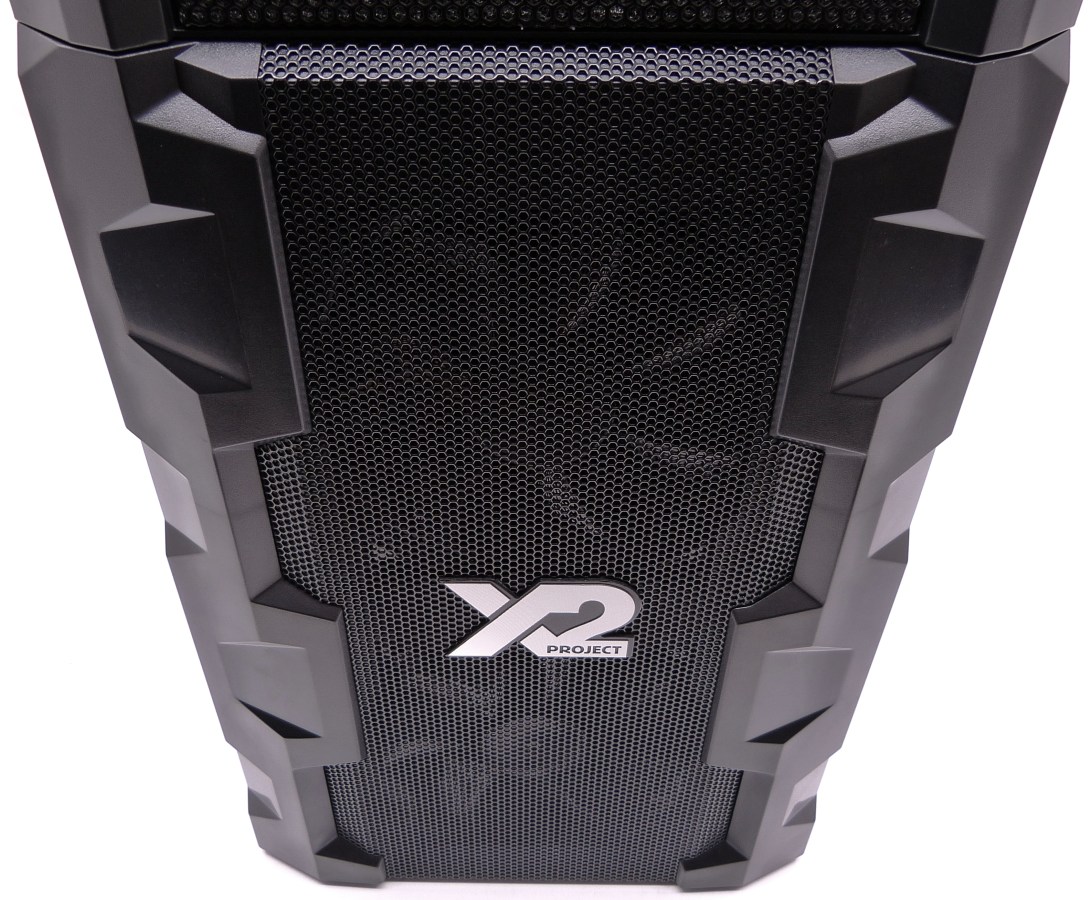 NOX BLAZE X2 PROJECT. Detalle Frontal Inferior. Puerta Abatible Cerrada. Logo X2 Project