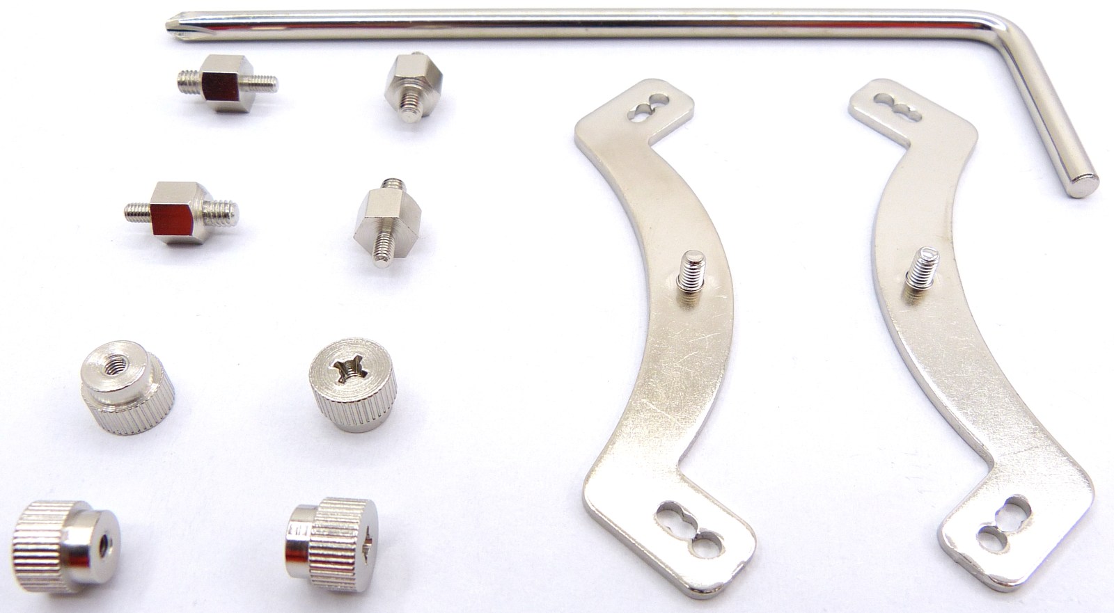 El kit de montaje se reduce a estas piezas, más las dos preinstaladas sobre el propio disipador, con dos tornillos con muelles para resolver el armado. Las piezas son cuatro tornillos de doble rosca, cuatro tuercas y dos brazos, junto con un destornillador en formato de «L» con punta de estrella compatible con las cabezas de tuerca. Éstas piezas vienen presentadas en una bolsa de plástico, quizá algo endeble y fácil de romper por cualquiera de sus pliegues laterales.